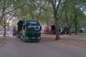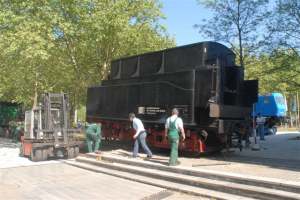 Unter Regie der Eisenbahnfreunde ging die Lok dann im April 2007 ein letztes Mal auf Reise: Von einer Rangierlokomotive geschoben erreichte Sie den ausgesuchten Umladeplatz: Ein Freiladegleis im Großmarktgelände, in der Nachbarschaft des Museums. Dieses Gleis hatte den Vorteil, dass man per Verladerampe ohne teuren Kraneinsatz die Lokomotive verladen konnte. | |