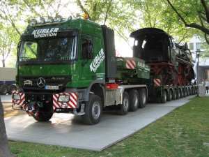 Durch umfangreiche Streckenstudien und Untersuchung der Verlademöglichkeiten wurde schnell klar, daß ein Transport per Straßentieflader vom Standort der Lok aus nicht möglich war. Zu viele niedrige Brücken versperrten den Weg. | |