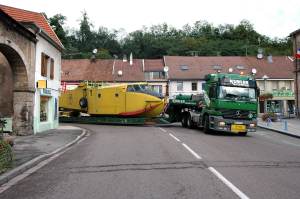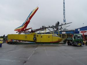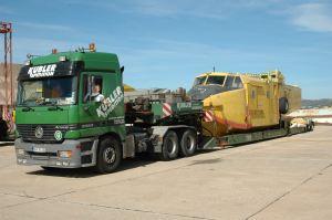 Kurz vorher wurde eine ausgediente CL 215 von den Profis der Canadair nach Kanada abtransportiert. 5 französische Spezialfahrzeuge wurden von den Kanadiern gebucht, um alle Teile eines einzigen Flugzeugs zum Hafen Marseille zu bringen. Die Museumstechniker wollten mit der Spedition Kübler eine wesentlich günstigere Lösung darstellen. Auf nur 4 Spezialfahrzeuge von Kübler sollten die 2 Wasserbomber verladen werden. Zusätzlich sollte noch ein Normalfahrzeug für die Motoren gechartert werden. | |||||||||||||||||||||||||||||||||||||||||||||||||||||||||||||||||||||||||||||||||||||